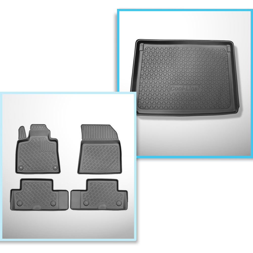 Conjunto de tapetes de bagageira e tapetes de carro feitos sob medida para Citroen C4 SpaceTourer Minivan (07.2013-11.2020) - 5 lugares; parte superior do porta-malas (base plana de porta-malas); sem terceira fileira