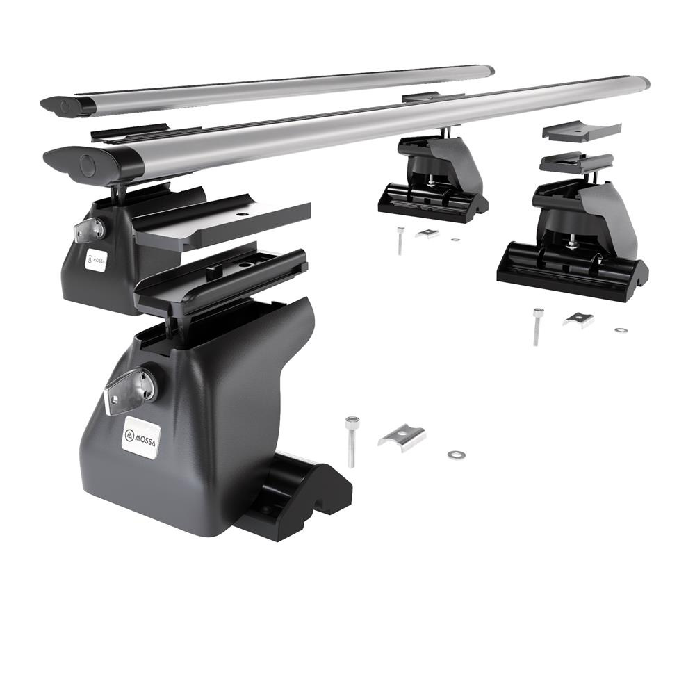 - O suporte de tejadilho base é composto por 2 barras maciças de alumínio e 4 suportes (chamados pés) <